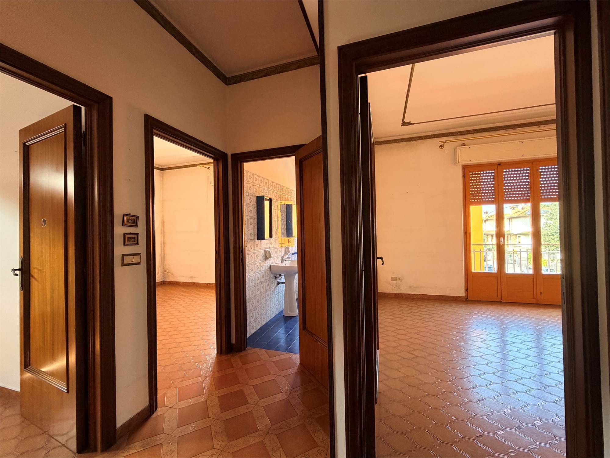 Elemento distintivo è il balcone che corre su due facciate, con affacci da tinello, sala e camere: uno spazio esterno vivibile che valorizza l’intera abitazione.